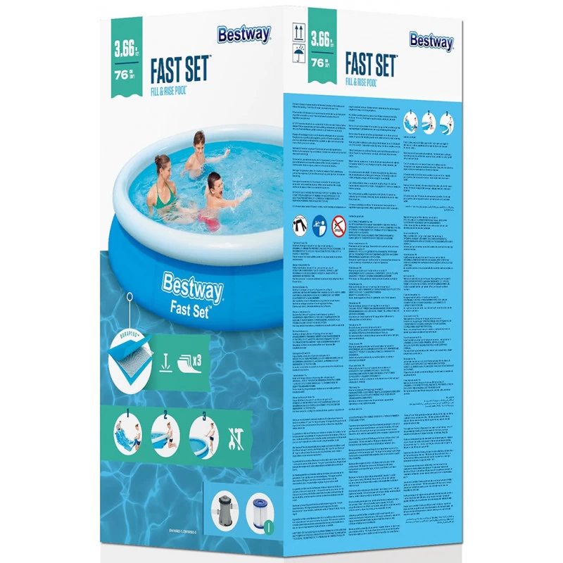 Facile et rapide a monter, le kit piscine Fast Set™ de Bestway® vous permettra de vous prélasser au bord de votre nouvelle piscine en un rien de temps. Cette piscine est idéale pour amuser vos enfants et leur faire découvrir le plaisir d’une baignade et les joies de la piscine en toute sécurité.