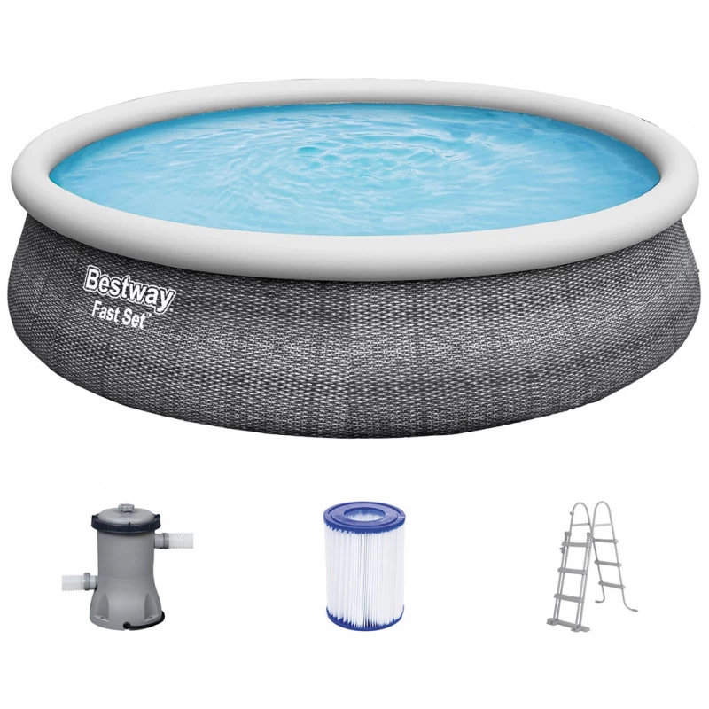 La pompe de filtration inclue avec la piscine vous aidera a garder une eau propre. Avec son liner effet rotin, elle apportera une petite touche de décoration a votre jardin. L’été n’est pas vraiment l’été sans la piscine Fast Set™ de Bestway® !