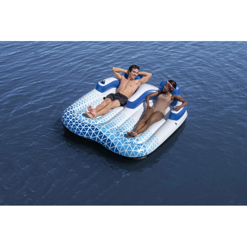La chaise longue gonflable double Indigo Wave™, élégante, confortable et spacieuse, vous permettra de passer une journée parfaite sur l’eau. Ce matelas gonflable est fabriqué dans un matériau Inflata-Shield™ robuste et résistant aux déchirures et dispose également d’une adhérence nettement améliorée. La construction haut de gamme avec accoudoir et appui-tete intégrés offre le meilleur confort possible pour se détendre au soleil. Une boisson rafraîchissante et un en-cas ne doivent pas non plus manquer. Grâce aux 2 porte-gobelets intégrés, vous les aurez toujours a portée de main. La valve a 2 voies améliorée permet un gonflage et un dégonflage plus rapides.