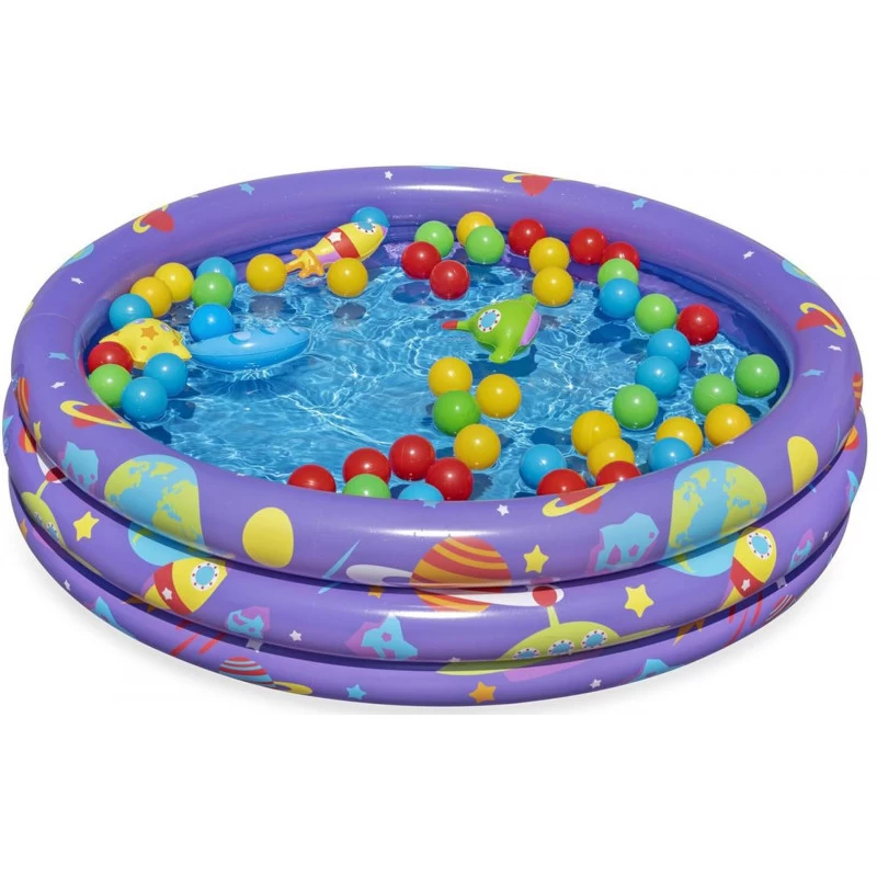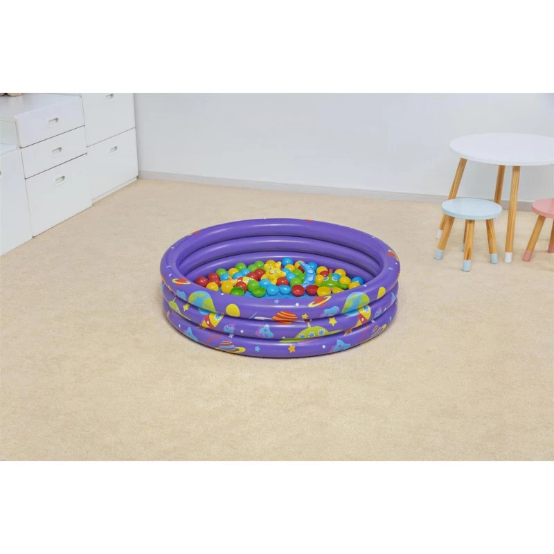 La robuste piscine gonflable avec balles permet aux enfants de s’amuser en toute sécurité. La piscine se compose de trois chambres a air reliées entre elles, fabriquées en vinyle coloré et résistant. Grâce au patch de réparation inclus, tout dommage peut etre rapidement réparé. La piscine peut etre utilisée avec ou sans eau – chaque piscine est livrée avec un jeu de 50 balles colorées et 4 jouets gonflables (a l’intérieur des balles). La piscine permet de s’amuser non seulement a l’extérieur mais aussi a la maison. Le produit est conçu pour les enfants de plus de 2 ans.