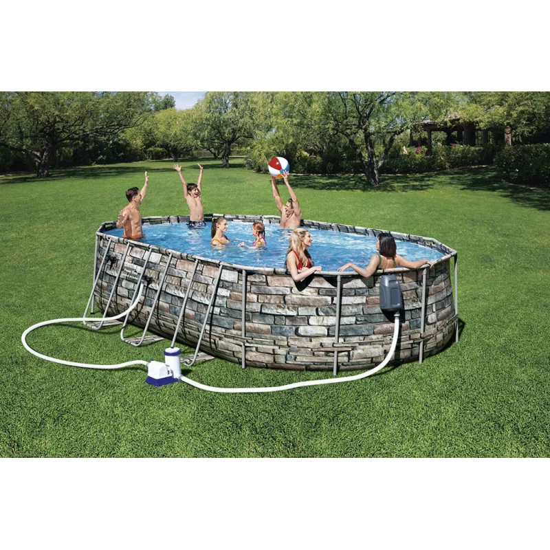 Partagez de véritables moments de convivialité avec la piscine de jardin Power Steel™ Comfort Jet™ ovale de Bestway® ! Idéale pour les familles, elle offre plus de place pour nager et s’amuser a plusieurs.