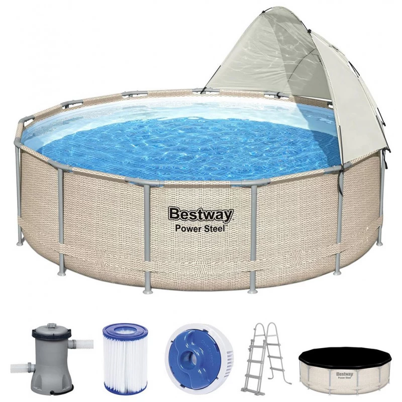 Partagez de véritables moments de convivialité avec la piscine de jardin Power Steel™ ronde de Bestway® ! Grâce a son auvent, votre famille pourra profiter d’une bonne baignade tout en se protégeant du soleil.
