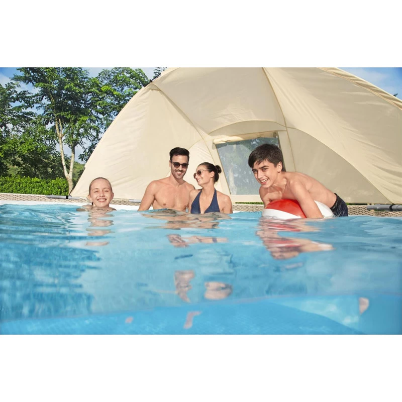 Avec la piscine Power Steel™ ronde et son auvent, votre famille ne voudra plus sortir de l’eau !