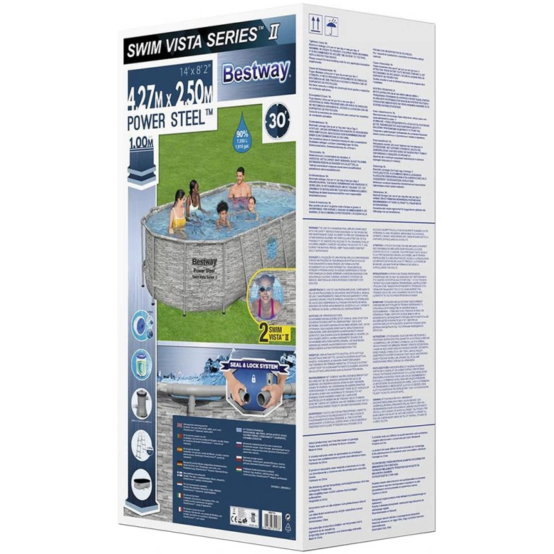 La piscines Power Steel™ Swim Vista Series™ ronde est imprimée d’un effet parement en pierres grises sur l’extérieur du liner. Ce décor innovant et tres harmonieux fera de votre transforme votre piscine en véritable élément de décoration pour votre extérieur.