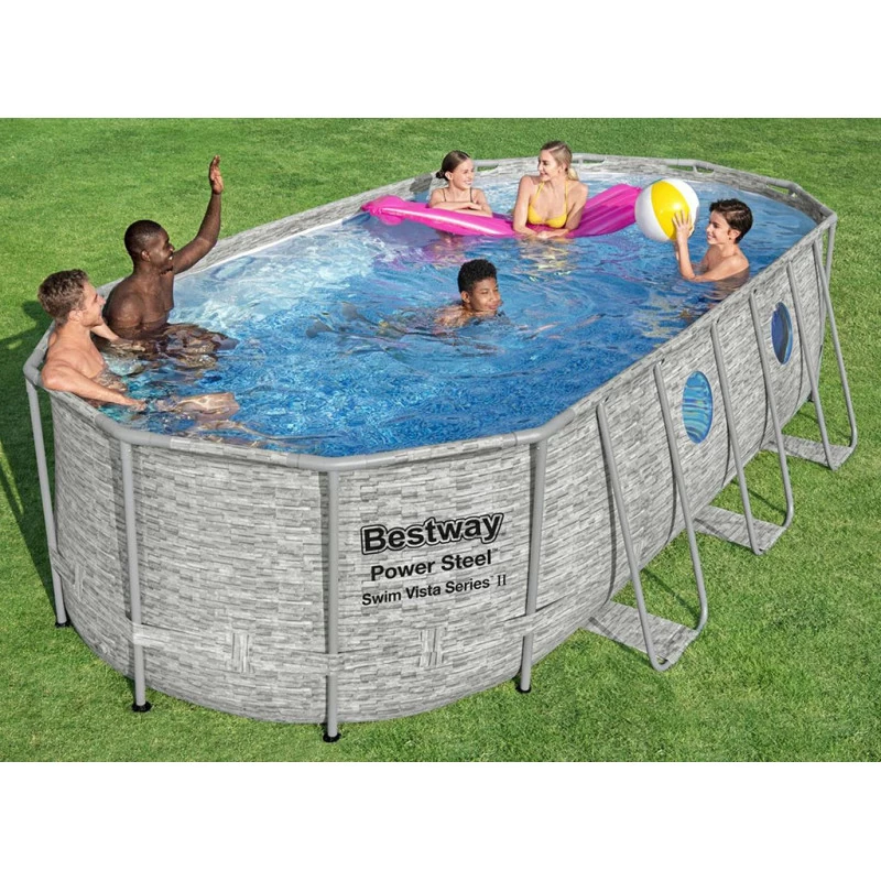 Envie de vous amuser dans l’eau tout l’été ? La piscine Power Steel™ Swim Vista Series™ ovale sera votre meilleur allié !