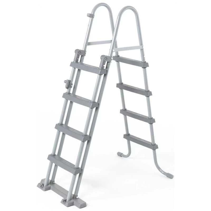 Pour garantir la sécurité de vos enfants, l’échelle est conçue avec un systeme de sécurité Flip and Lock qui empeche l’acces non surveillé a la piscine.