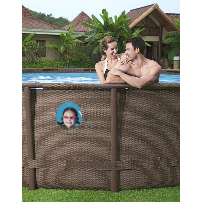 Les piscines Power Steel™ Swim Vista Series™ de Bestway® offrent aux familles une expérience aquatique pour le moins unique. Grâce aux hublots renforcés intégrés aux parois de la piscine, les nageurs peuvent saluer et faire des grimaces en passant. Ces fenetres permettent également aux parents de surveiller facilement leurs enfants lorsqu’ils se baignent.