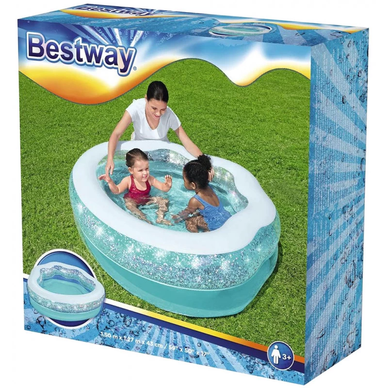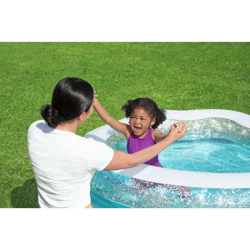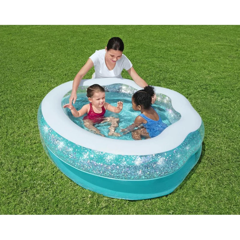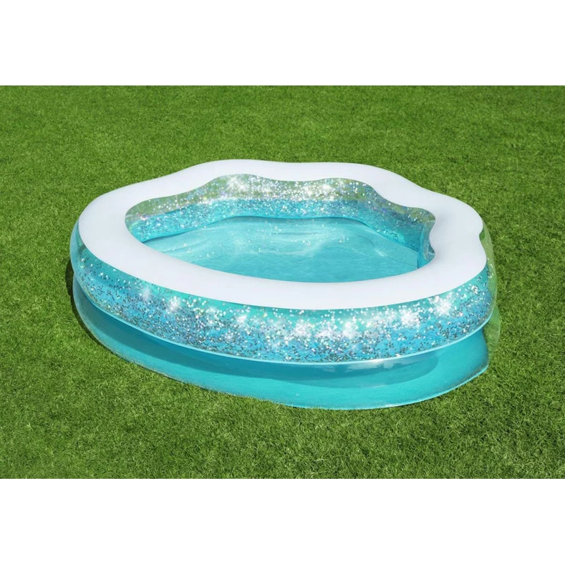 Un grand rafraîchissement pendant les chaudes journées d’été dans un environnement familial, que demander de plus ? Cette Sparkle Shell™ piscine gonflable pour enfants avec paillettes enchantera aussi bien les filles que les garçons. Le design de coquillage avec des paillettes sera particulierement apprécié par les enfants lorsque le soleil brille – il scintillera magnifiquement. Le volume est de 230 litres. La piscine est assez grande pour deux enfants. Elle convient aux enfants a partir de 3 ans.