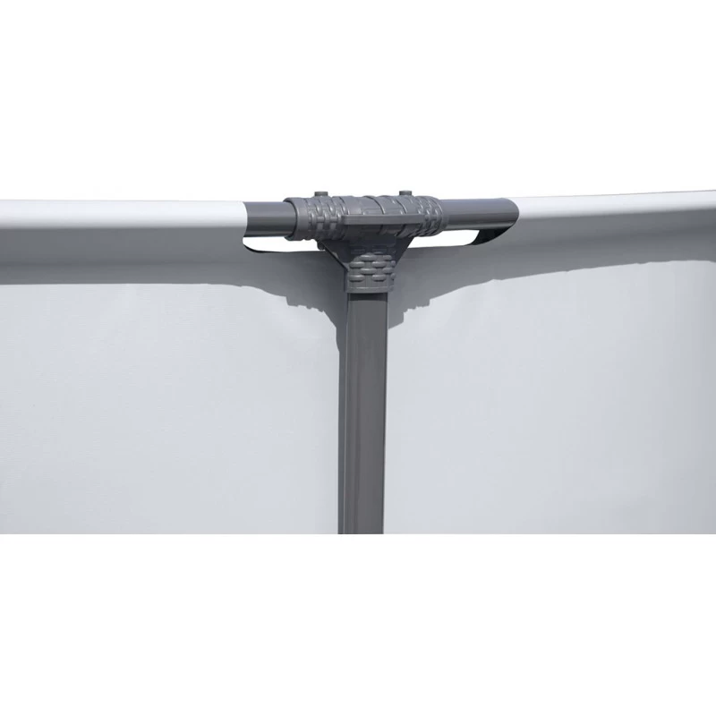 La structure métallique anticorrosion des piscines Steel Pro™ est équipée de notre systeme FrameLink™, qui assure une solidité remarquable. Cette technologie fonctionne grâce aux raccords moulés en forme de T qui préviennent de la corrosion entre les tubes en métal.