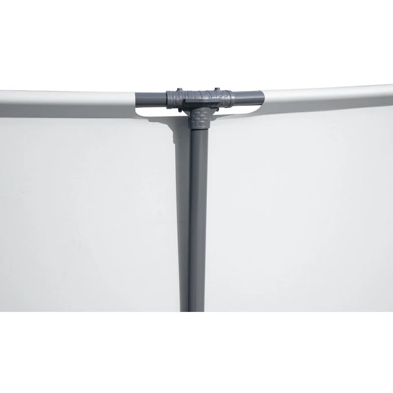 La structure métallique anticorrosion des piscines Steel Pro™ est équipée de notre systeme FrameLink™, qui assure une solidité remarquable. Cette technologie fonctionne grâce aux raccords moulés en forme de T qui préviennent de la corrosion entre les tubes en métal.