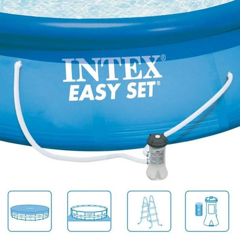 La piscine Easy Set d’Intex est un fantastique investissement pour l’été. Elle est tres simple a installer et elle vous permettra de passer des heures dans l’eau. Cette piscine a un diametre de 457 centimetres et 122 centimetres de haut. La piscine dispose d’un drain ou vous pouvez connecter le tuyau d’arrosage, de sorte que vous pouvez vider l’eau de la piscine, directement dans l’égout. La nouveauté de cette piscine est qu’elle est équipée de la technologie Hydro Aeration qui ajoute plus d’air a l’eau pour mieux filtrer, circuler plus et donner une meilleure qualité d’eau.