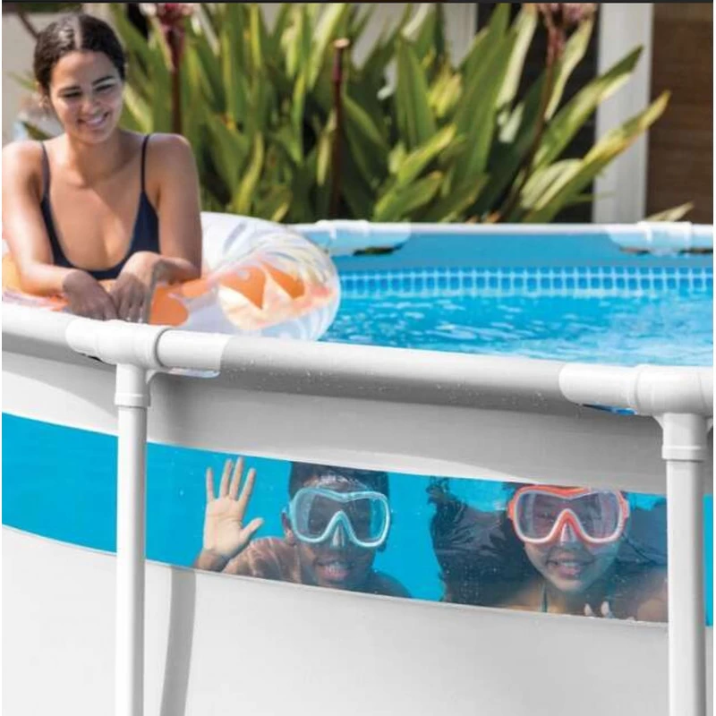 Les dimensions de 427 x 107 cm cm offrent suffisamment d’espace pour petits et grands . L’épaisseur du fond de la piscine est de 0,32 mm et l’épaisseur de la paroi est de 0,5 mm.